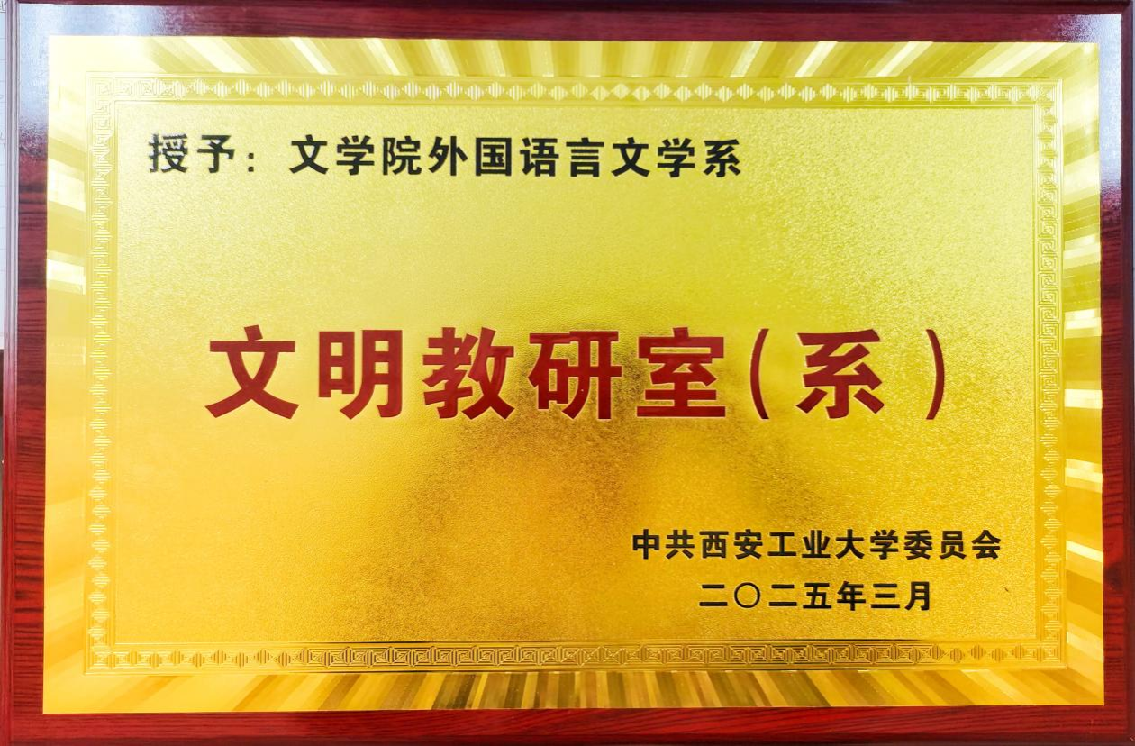 外国语言文学系以师德师风建设为核心,通过“课程思政示范课”“跨文化学术沙龙”等品牌活动,推动教学科研与育人工作协同发展,获评校级“文明教研室(系)”。