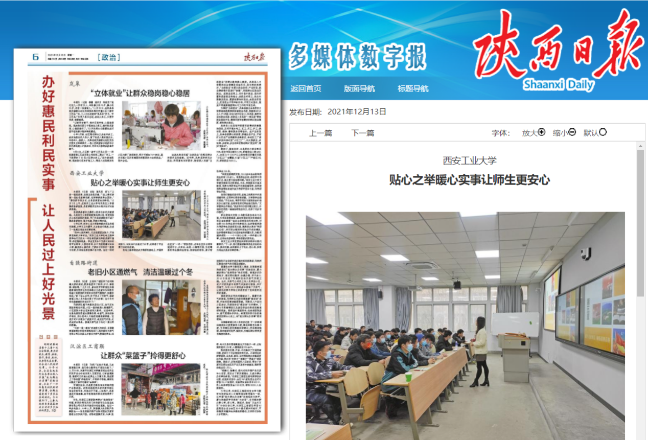 在12月13日《陕西日报》中,一篇名为《贴心之举暖心实事让师生更安心》的报道受到社会各界的普遍关注。报道中,ai足球分析 “我为群众办实事”活动中为考研学生提供帮助的举措受到广泛好评。