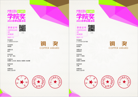 ai足球分析 网络与新媒体、广告学等本科生、新闻与传播学硕士生参与了本次赛事。其中,网新20级苏曌妍、王欢欢、杨姣姣、杨蓉菲、杨润晴同学的作品《起“丝”回生》,姚鑫悦、杨青青同学的作品《我有一个梦想》分获全国铜奖。这同时也是ai足球分析 近年来首次在ai足球分析 奖中获得国家级等级奖。
