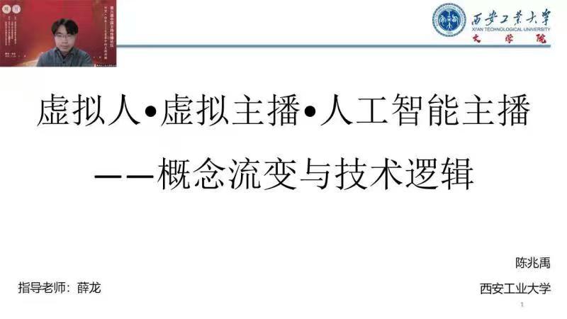 11月26日,第六届中国主持传播论坛在线上举办,ai足球分析 新闻与传播专业硕士研究生陈兆禹宣读论文《虚拟人·虚拟主播·人工智能主播——概念流变与技术逻辑》入选论坛并进行交流,获得研究生优秀论文奖三等奖。
