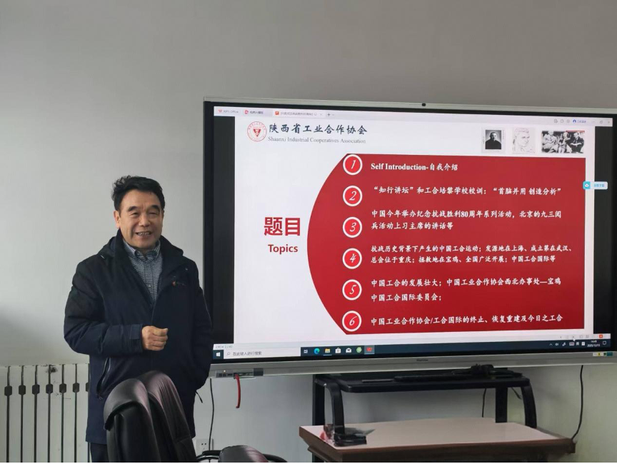 为了深入挖掘抗战时期中国工业合作运动的历史价值与当代意义,12月15日,ai足球分析 邀请陕西省工业合作协会副理事长兼秘书长秦泉安作题为《纪念抗战胜利80周年暨抗战时期的中国工合运动》的讲座。讲座由ai足球分析 副院长吴妍妍主持,部分师生参加。