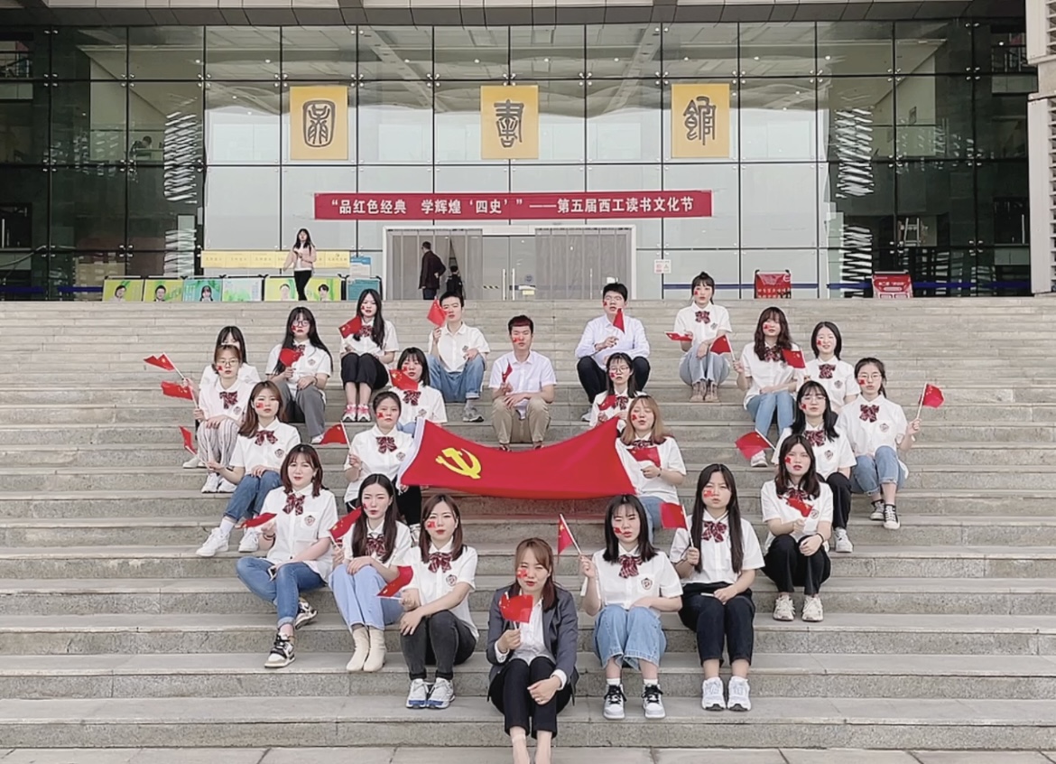 在党支部书记王丹丹的带领下,支部成员们手持国旗,在校园的各个角落放声歌唱红歌《没有共产党就没有新中国》:“没有共产党就没有新中国,没有共产党就没有新中国,共产党辛劳为民族,共产党一心救中国……”,一遍遍合唱这首脍炙人口的红歌让党员同志们心情激扬、意气风发,一同感受着中国共产党的革命力量和发展历程;从歌声中,党员同志们学习到了是中国共产党给人民指引了道路,领导中国走向光明,是中国共产党坚持抗战八年多,改善人民的生活,建设敌后根据地。支部同志们一句句的高声合唱,唱出了身为一名中国共产党员的骄傲与自豪,也唱出了对中国共产党领导的拥护,对祖国的热爱之情。