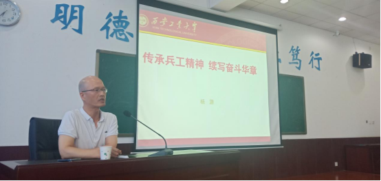 最后,杨灏结合学校在办学传统、校训、校风中包含的“兵工精神”,解释了我们学校为什么要继承和发扬“兵工精神”。他认为作为西工的教职工就应该在立德树人、言传身教的过程中,传承和践行“兵工精神”,发扬“人民兵工”优良传统,为国家和人民培育出更多的人才。