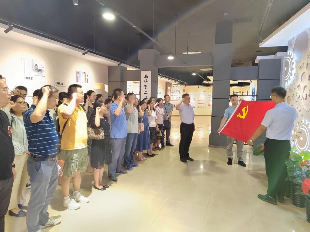 在校史馆,全体党员在党旗下庄严宣誓,重温入党誓词。铿锵有力的宣誓声激荡着共产党人的理想与信念,激励新老党员以更加饱满的热情发挥先锋模范作用,踔厉奋发,勇毅前行。