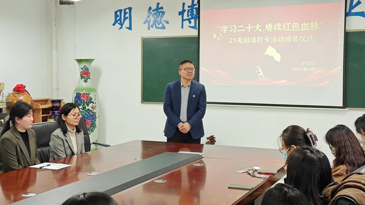 为表彰鼓励参加此次活动的同学,423日晚,ai足球分析 于424会议室举行颁奖仪式,ai足球分析 党委书记程建虎、副院长吴妍妍、研究生辅导员张春老师出席本次活动,活动由ai足球分析 研究生会主席团成员牛林主持。首先,主持人牛林对本次活动基本情况做出相关介绍。他表示,“读书破万卷,下笔如有神,阅读应该成为我们的习惯,也相信同学们在今后的生活中会继续坚持阅读的习惯,阅读永无止境。”接着,程建虎书记对本次活动作总结性发言。他希望同学们通过此次活动更好地领悟二十大精神,传承红色基因,提高政治觉悟,更加紧密地团结在党组织周围。程书记引经据典,告诫同学们读书不应仅局限于“表面功夫”,要将阅读过的书籍内化为自己的精神力量,做到胸藏文墨怀若谷,腹有诗书气自华。他希望广大同学将阅读融入生命,做一个习近平总书记要求的“有志气,有骨气,有底气的新时代青年”。随后,程建虎书记和吴妍妍院长为获奖同学颁奖并合影留念。