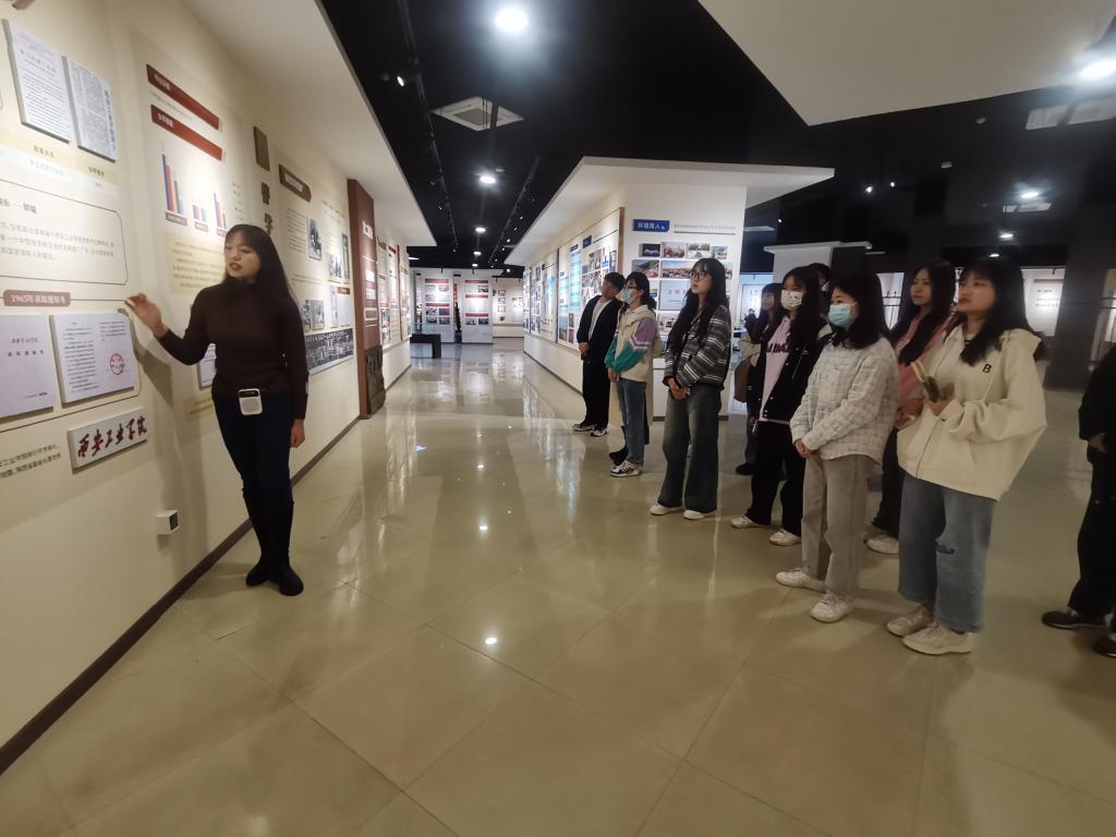 在校史馆讲解员的带领下,同学们沿着历史长廊,回顾着学校的办学历史、专业建设、教育教学、师资队伍、科学研究、校园文化、对外交流与合作等方面。兢兢业业,诲人不倦的名师学者使他们肃然起敬;学有所成的校友故事令他们感受到榜样的力量;一幅幅精美的画面、简约的文字、翔实的资料,让他们领略到学校深厚的文化底蕴。