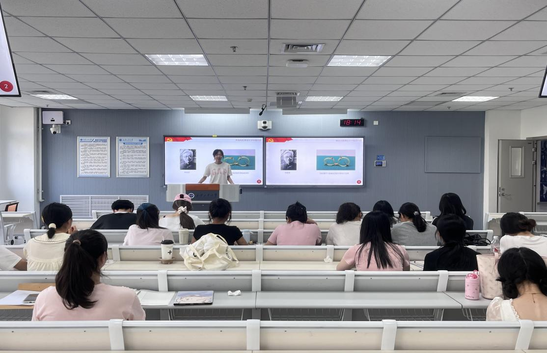支部成员邢筱语通过展示珍藏于八路军驻西安办事处的一副眼镜图片,向与会党员讲述了原中共中央驻陕代表林伯渠艰苦朴素、勤俭节约的日常生活。