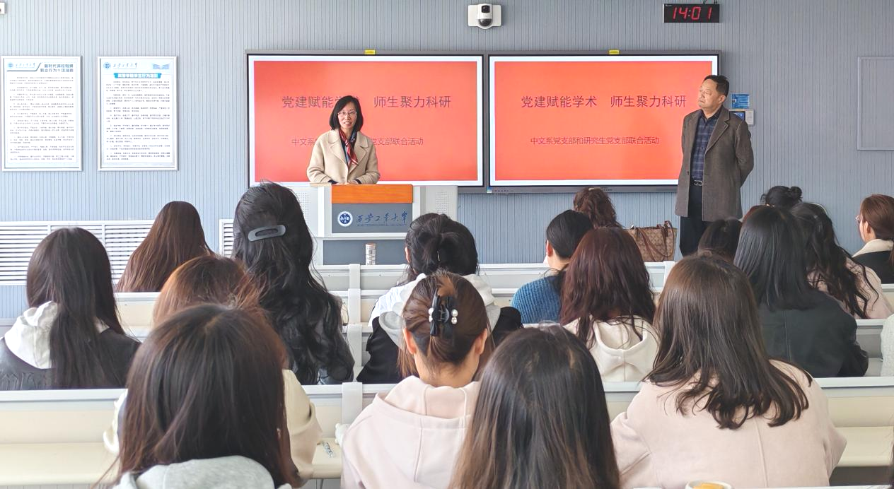 中文系党支部以党建示范创建和质量创优工作为指引,充分发挥党建工作的政治核心作用,坚持围绕中心抓党建、抓好党建促发展,积极探索党建与教学、科研、学科发展工作深度融合的新思路、新举措,2025年3月19日,中文系党支部联合研究生党支部在教9-321开展“党建赋能学术,师生聚力科研”的党建活动。