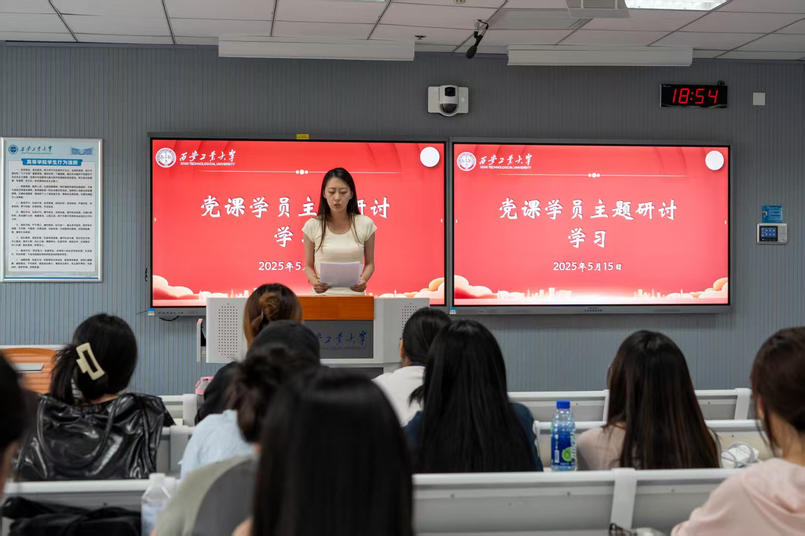 在研讨学习环节。同学们围绕学习内容积极发言,分享自己的学习心得和体会。多名同学分别从不同角度对习近平总书记关于加强党的作风建设的重要论述进行了深入探讨。有的同学结合自身实际,谈到了在日常学习和生活中如何践行党的优良作风;有的同学从历史维度出发,回顾了党的作风建设的发展历程,强调了优良作风在党的事业发展中的重要作用;还有的同学从现实意义层面,分析了加强党的作风建设对于实现中华民族伟大复兴中国梦的重要意义。