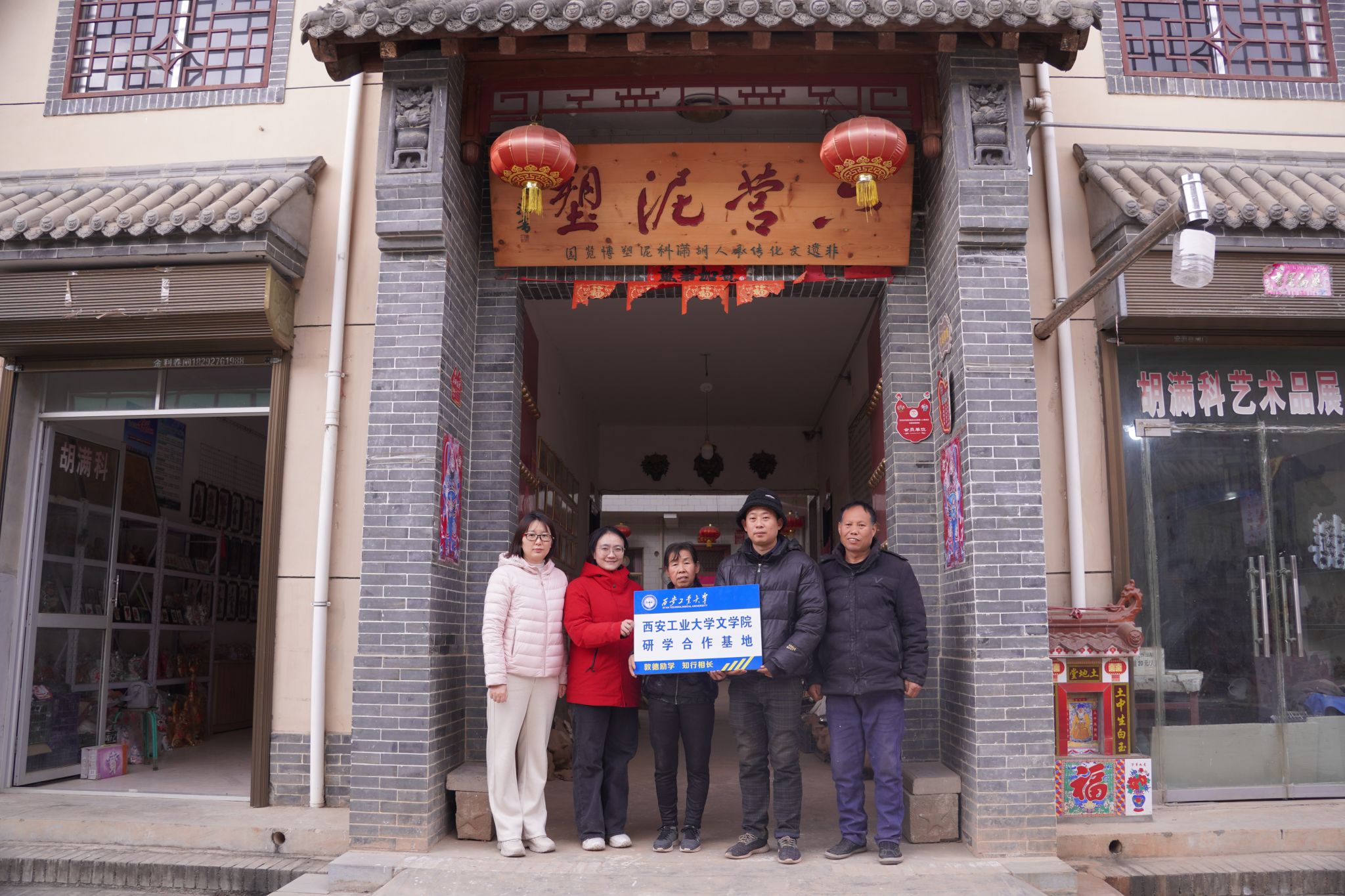 党委委员陈红副教授,新传系党支部书记于晗教授等师生代表一行,赴位于凤翔县的“中国泥塑文化园”开展实地调研,与凤翔泥塑非遗传承人胡满科、胡超进行深入交流,并举行“研学合作基地”授牌仪式。