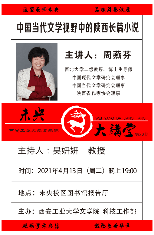 、科技工作部联合举办“未央大讲堂”系列文化讲座,现将第二十二期讲座信息通知如下: