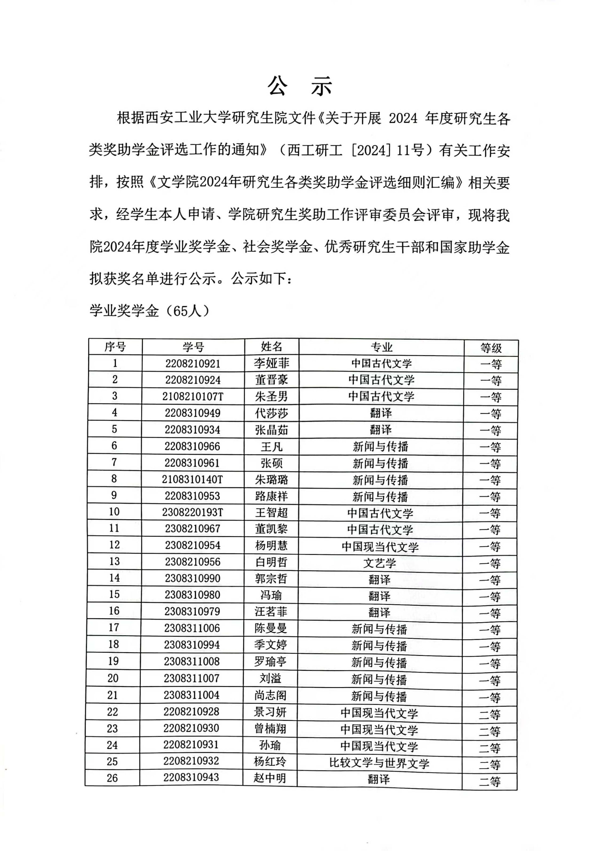 ai足球分析 2024年研究生学业奖学金、社会奖学金、优秀研究生干部和国家助学金拟获奖名单公示