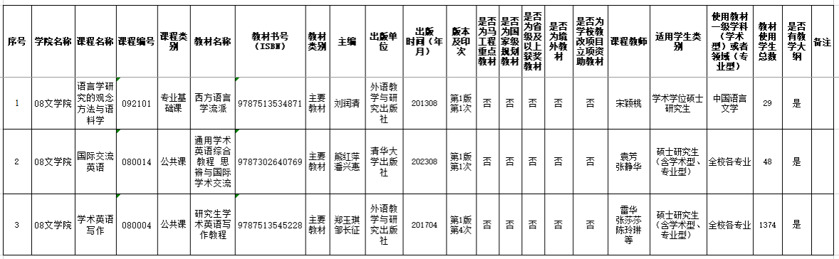 根据《关于做好2024—2025学年第二学期研究生教材选用工作的通知》、《西安工业大学研究生教材管理办法(试行)》、《西安工业大学研究生教材选用要求》,开课教师根据培养方案需求填写《西安工业大学研究生教材选用汇总表》,ai足球分析 教材委员会对选用教材质量进行全面审核评价,现将评审公示结果如下: