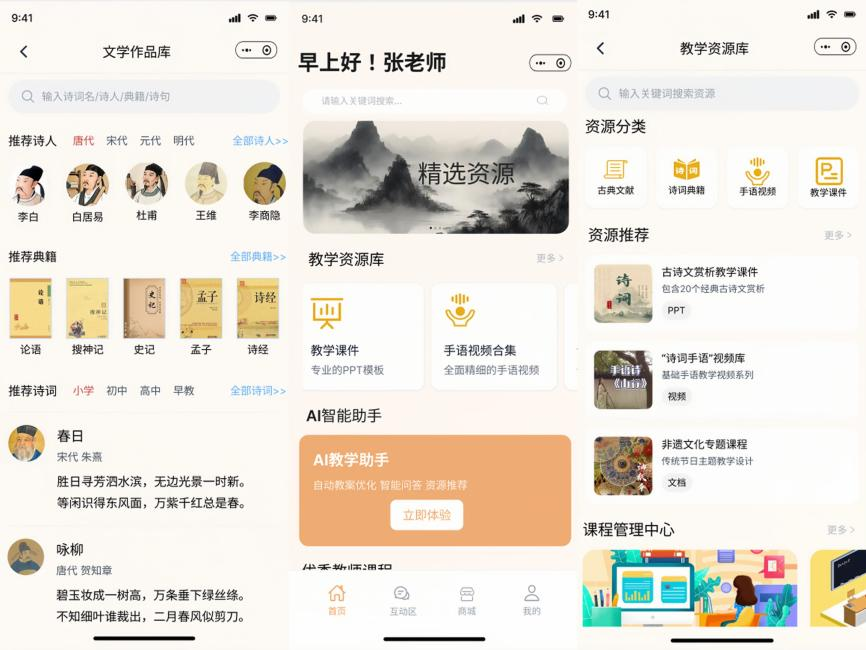 针对师生提出的需求,团队在平台中整合了古诗词资源,推出手语翻译视频和配套图文注释,帮助学生逐句把握诗意。与此同时,还设计了知识卡片和背景材料,方便学习者延伸理解。在此基础上,平台进一步尝试引入虚拟现实技术,把诗词中的意境转化为可感知的场景,让学生能够在沉浸式的体验中更深入地理解作品。