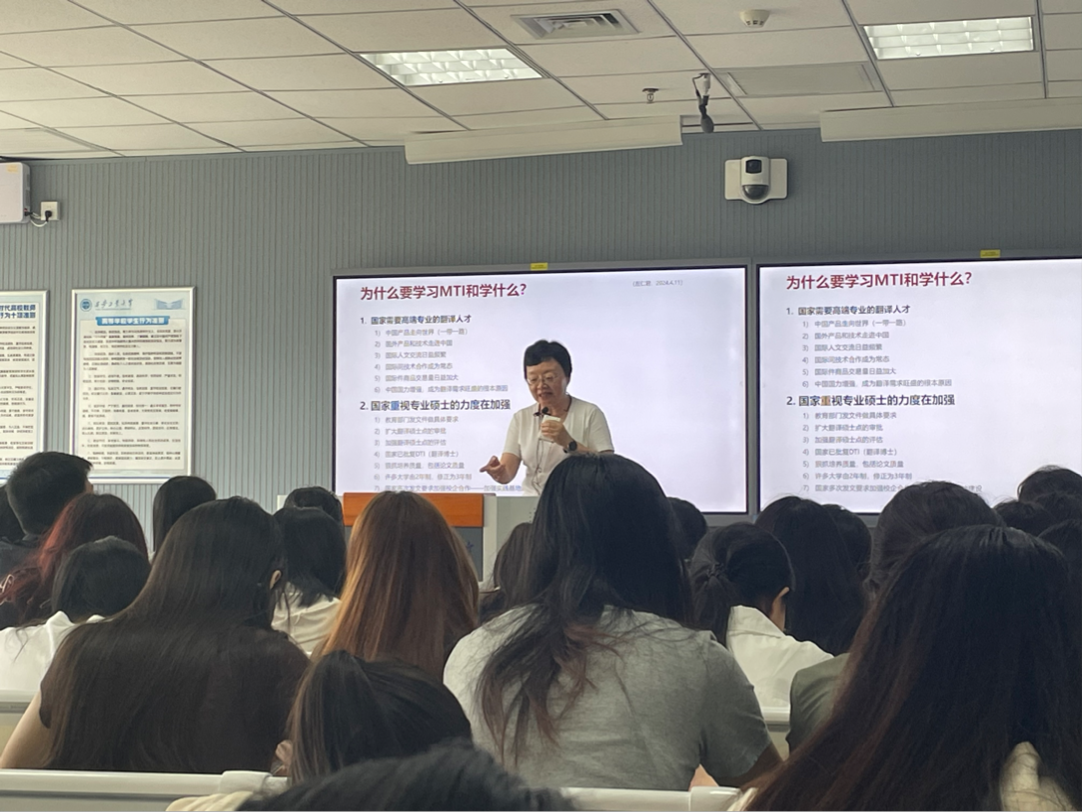 讲坛伊始,穆雷教授基于权威行业详实的数据,全面分析了语言服务行业的最新发展趋势,以及行业对翻译人才需求的变化。她指出,在全球化深入发展和国际交流日益密切的背景下,语言服务行业正迎来前所未有的发展机遇。她强调,新时代的优秀翻译人才应当具备三大核心能力:深厚的双语功底、跨文化交际素养以及现代翻译技术应用能力。
