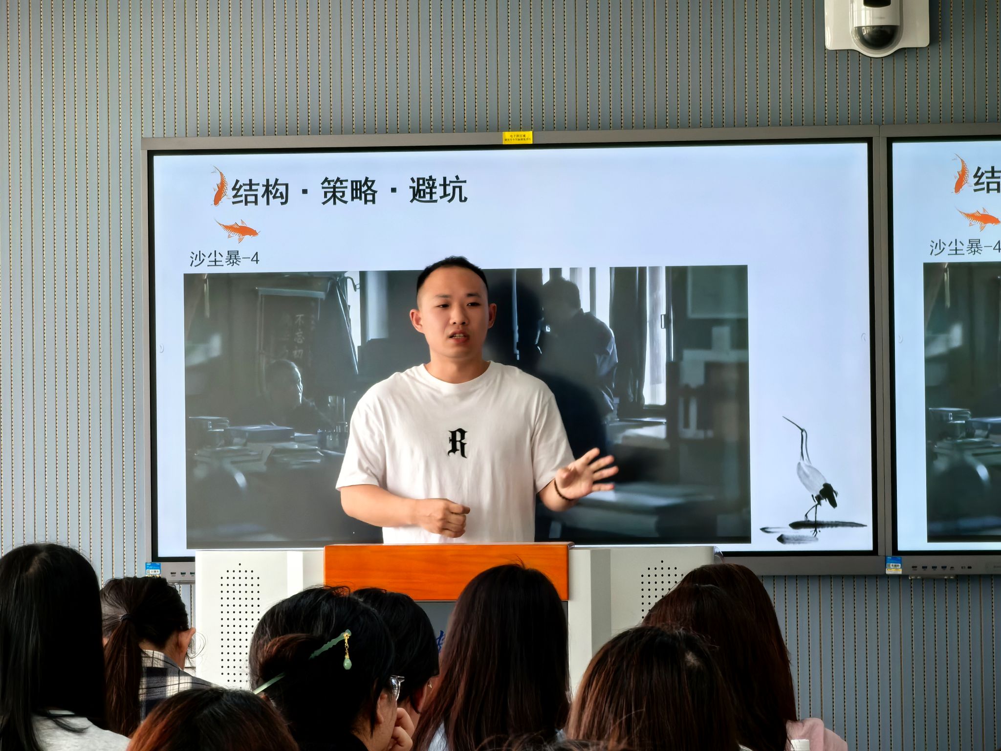 在专题分享环节,董凯黎以“文科论文选题与写作策略”为题,从学术视野拓展、经典文献研读、论文框架搭建等维度展开深入讲解。她特别强调“大处着眼,小处着手”的写作理念,鼓励同学们以开放心态对待论文修改过程,将每一次修改视为学术精进的机会。武小棠则聚焦“学术研究与职业发展平衡之道”,不仅系统介绍了微信本地宝等实用就业信息平台,更通过《水浒传》《沙尘暴》等经典文本的案例分析,生动诠释了文学创作与学术研究的有机融合。