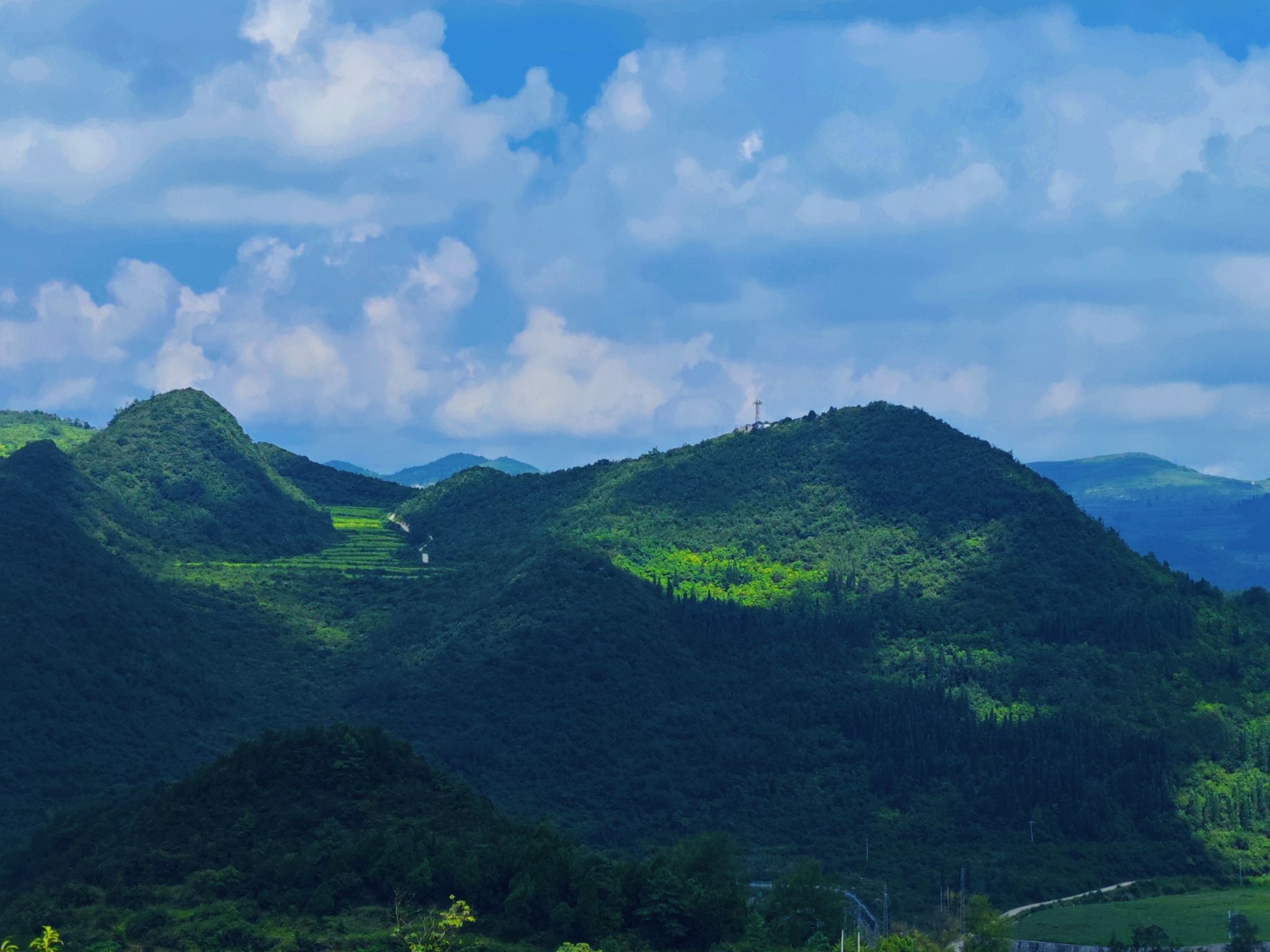 停留片晌,又接着上路,我背起行囊,向山巅走去。山从来都是很迷人的东西,它高的近乎撞碎云朵,我走着来时的山路往上,一路上荡漾着花香和水雾,满山的林树朦胧地氤氲其间,那么山色慢慢变得不再晴朗,模糊却又清晰。结束艰难的脚步,我还是站在了山顶,俯瞰下去,群山万壑,松涛波澜。夕阳把山打成橘色,温暖又厚重,细碎的毫芒把距离拉脱,我张开双臂,它便拥抱了我。