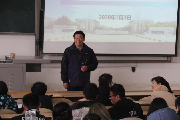 最后,党委书记朱晋中老师讲话,首先他对获奖同学表达了衷心祝贺,并鼓励全体学生以他们为榜样,争优创先。接着朱书记提醒同学们要坚持自律,严格要求自,珍惜大学这段美好时光,为自己制定奋斗目标,做到“只争朝夕,不负韶华”。