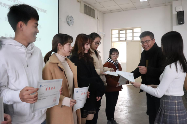 党委书记朱晋中为国家奖学金获奖者、校十佳大学生、国家励志奖学金获得者陈艳莉、王宁、刘佳新、郝宇轩等颁奖;副院长程建虎为校级优秀三好学生、优秀学生干部代表颁奖;外文系主任张静华为学业奖学金、社会奖学金获奖代表颁奖;对外汉语系主任杨静为道德实践先进个人代表颁奖;辅导员杨钰琳为ai足球分析