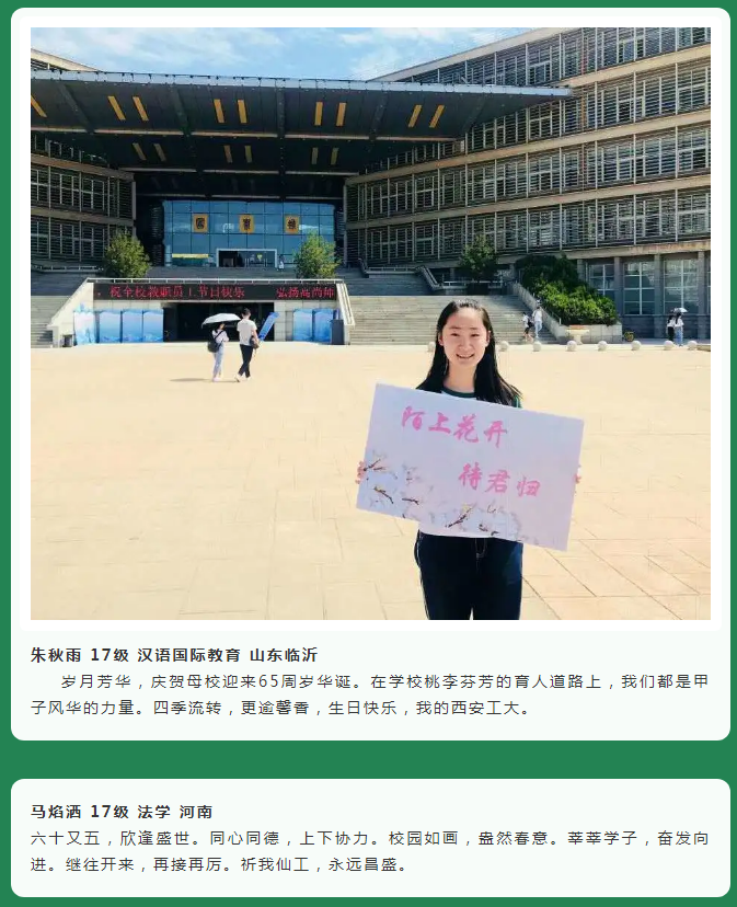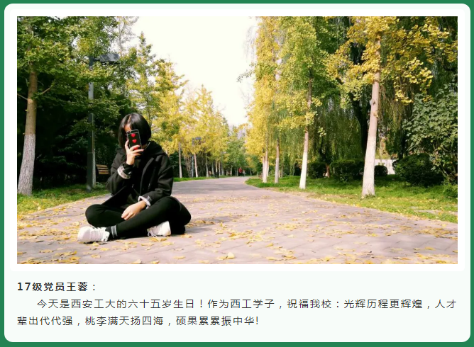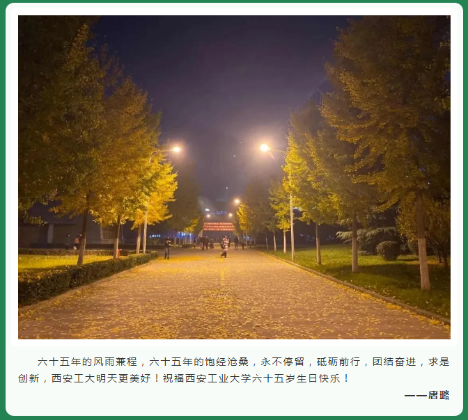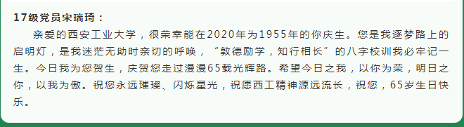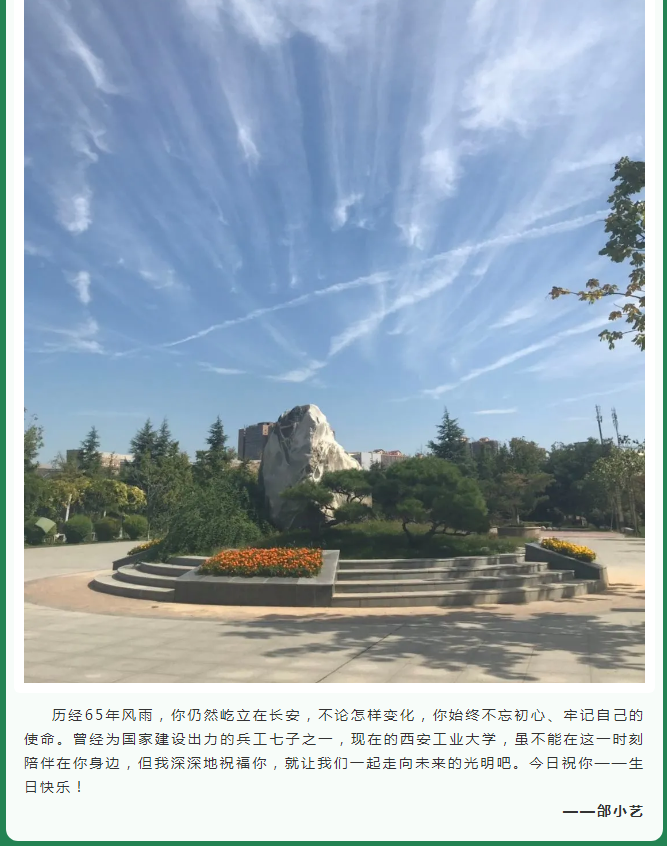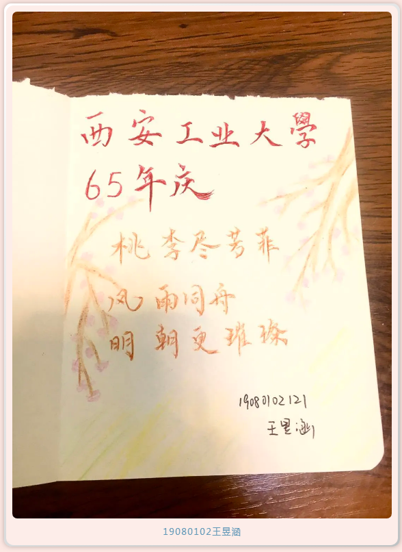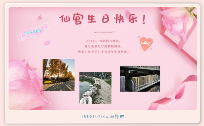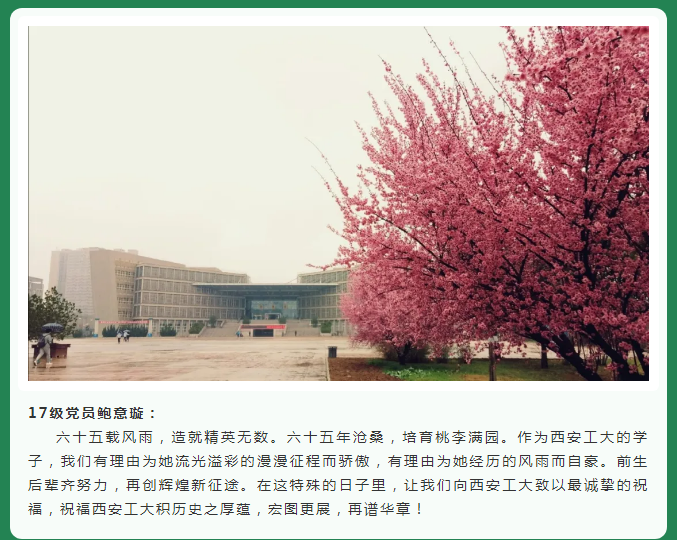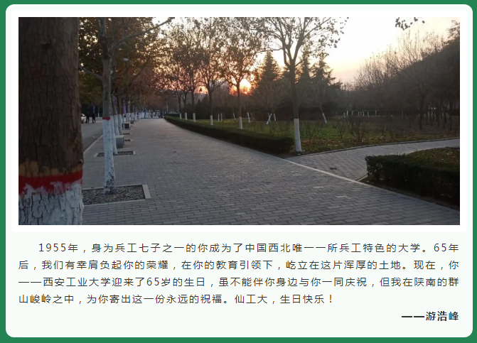 今天,西工人以爱为笔,勾勒对学校的思念与祝福,写下对西安工大的真挚告白。