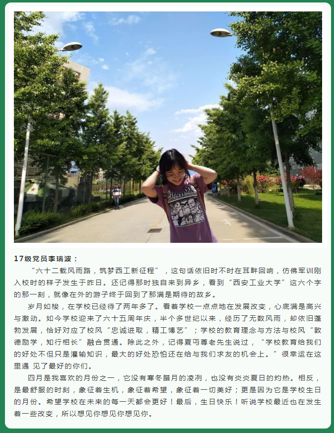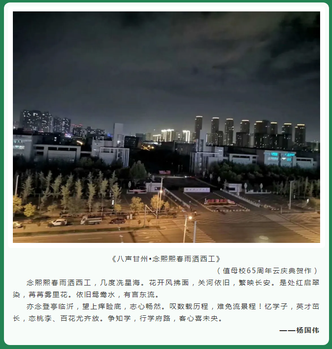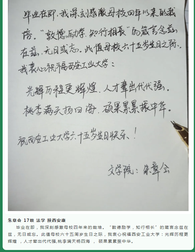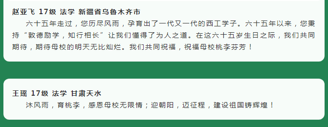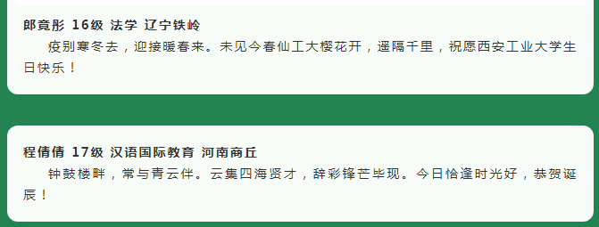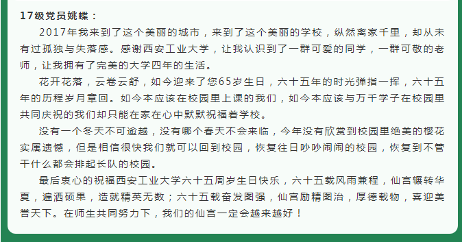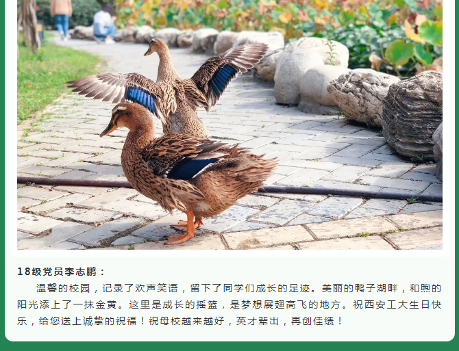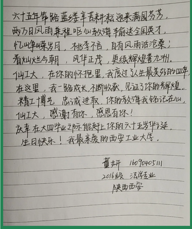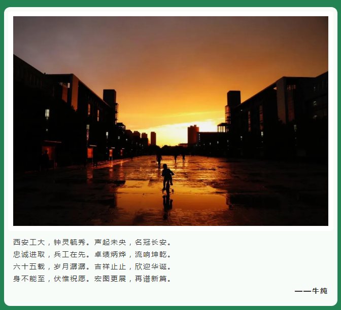 今天,西工人以爱为笔,勾勒对学校的思念与祝福,写下对西安工大的真挚告白。
