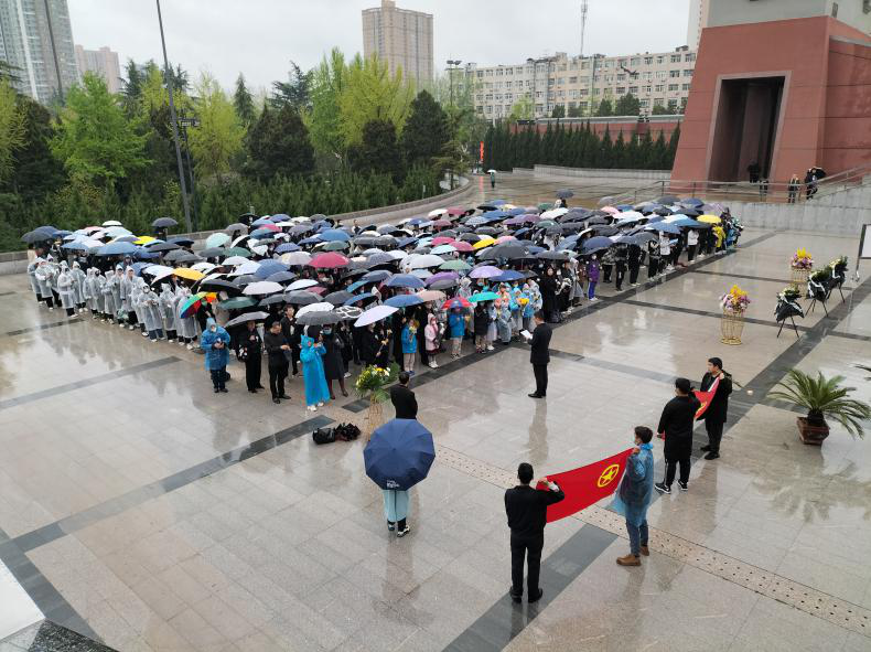 研究生怀着对革命先烈们的崇高敬意和无限哀思来到西安烈士陵园,参加了西安市心连心志愿者协会举行的简短而又隆重的悼念仪式。