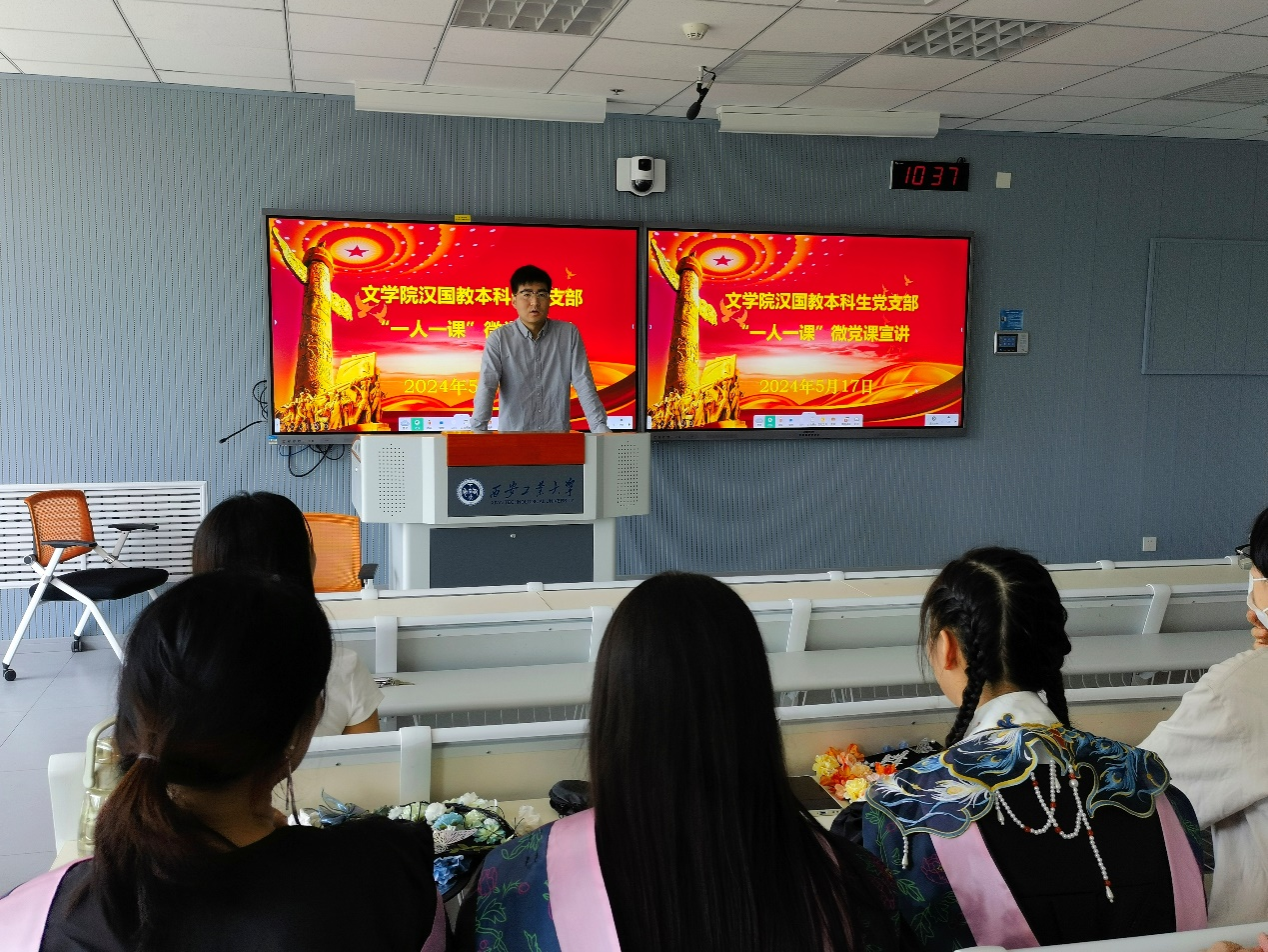 汉国教本科生党支部于2024年5月17日,在教9-319教室开展了“一人一课”微党课宣讲活动,活动由党支部书记王磊主持,全体支部党员参会。