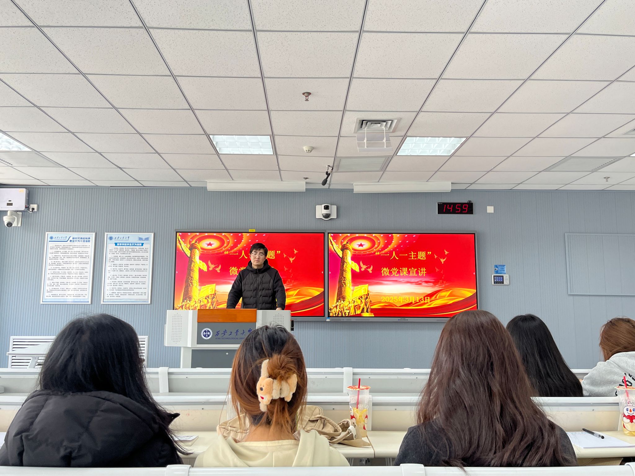网新本科生党支部在教9-319教室举办“一人一主题”微党课宣讲活动。本次党课以 “打得一拳开,免得百拳来”为主题,由支部党员李雯同志主讲,党支部书记王磊同志主持,全体党员参与学习。
