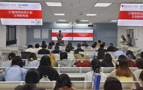 于3月25、26日在教9-319召开考研指导会。此次大会特别邀请了文都考研和新东方考研的资深专家,为同学们带来全方位的考研指导。会议由学工办主任李聪主持,英语、汉语言文学、网络与新媒体专业学生积极参加此次大会。