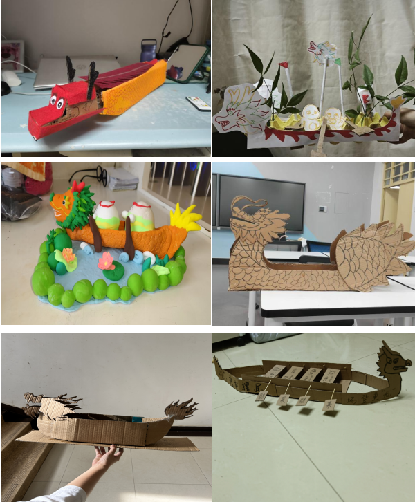 在制作过程中,同学们充分发挥自己的想象力和创造力,运用各种材料和工具,将传统龙舟的特色与现代工艺相结合。经过大家分工明确的制作,一艘艘精美的龙舟模型呈现在大家眼前,每一艘都独具匠心,展现出同学们的精湛技艺和对传统文化的深刻理解。