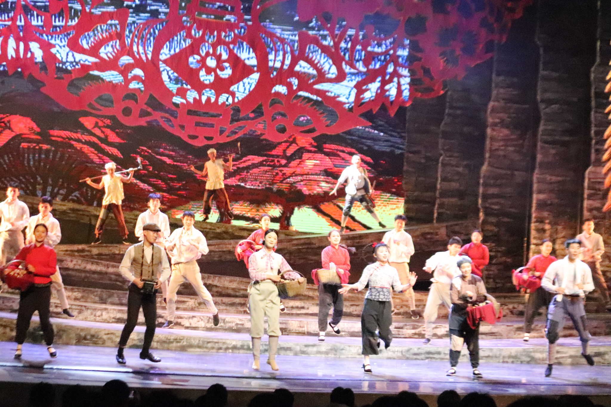 红秀《延安延安》在《保卫黄河》的磅礴乐章中拉开序幕。声光电的磅礴交织,瞬间将舞台化为历史的漩涡,把学员们拉回到那个热血澎湃的年代。合唱团的雄浑嗓音与杂技的高难度动作,将革命激情演绎得淋漓尽致。演出结束,大幕虽落,掌声却如潮水般久久不息。这一刻,所有师生都沉浸在巨大的震撼之中,历史的厚重与信仰的力量,已无需言语。