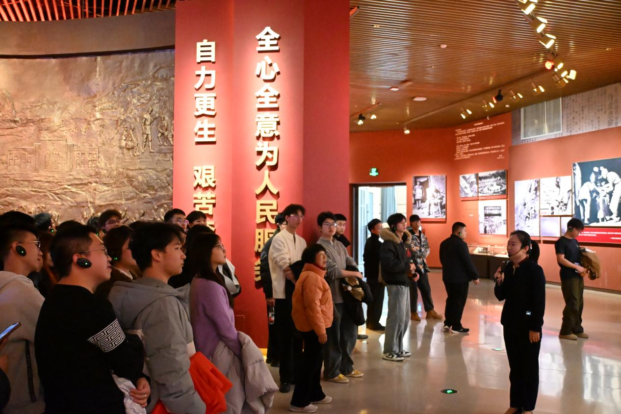 在讲解员的引导下,学员们循着五大展区的历史脉络缓步前行。展柜中的件件旧物,仿佛是穿越时空的叙述者:一支斑驳的军号,仍在回响着冲锋的激昂;一页泛黄的手稿,默默承载着思想的重量;一架磨损的纺车,细细诉说着自力更生的艰辛。它们与精心复原的窑洞场景交织融合,完整再现了党中央在延安时期扎根立足、开创伟业的壮阔历程。这场沉浸式的“精神寻根”之旅,让历史书本上的描述变得可感可触。学员们由衷感叹,这不仅是一次参观,更是一次深刻的精神洗礼,让革命岁月的记忆如此鲜活、如此澎湃地呈现在眼前,烙印在心里。